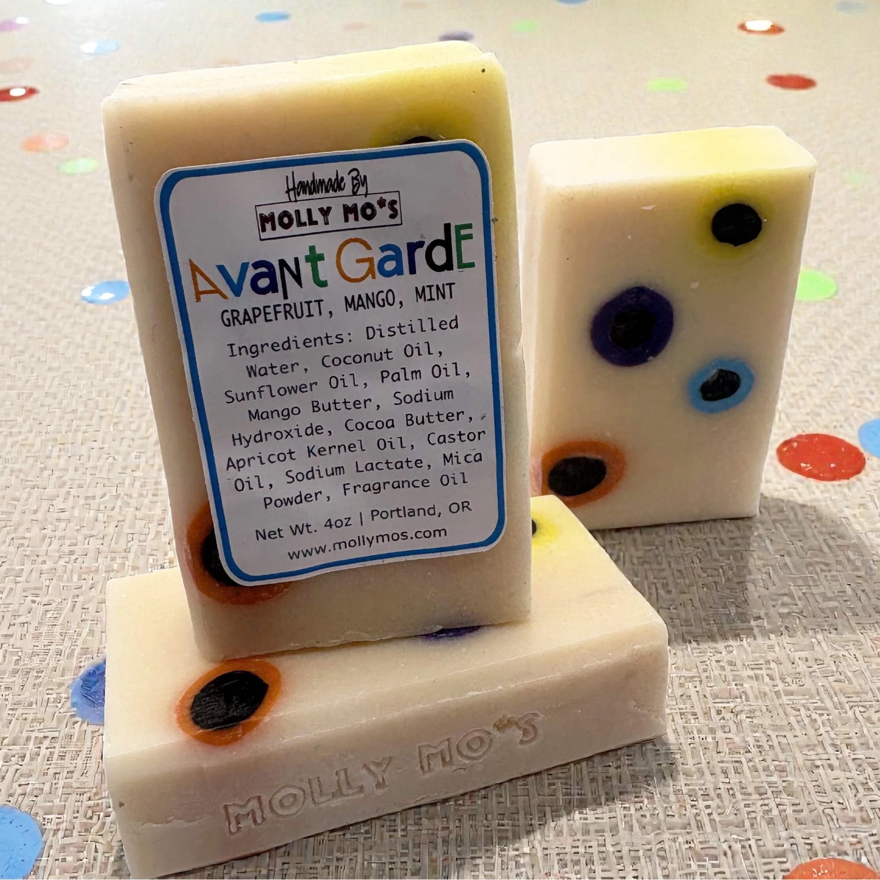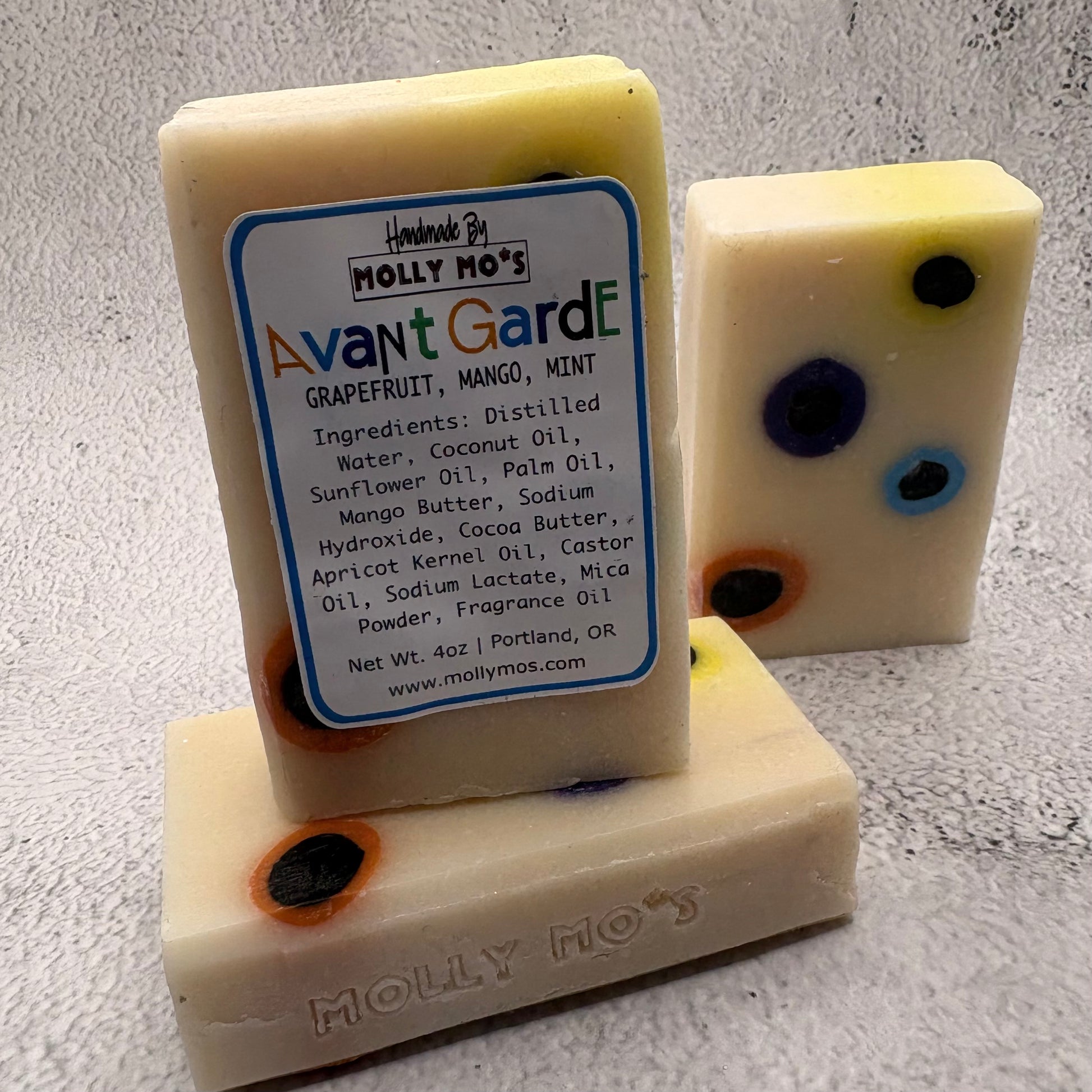 Bold, modern, and unapologetically fun—Avant Garde is where art meets skincare. With its bright, playful polka dots set against a smooth cream background, this bar is a nod to contemporary design and fearless self-expression.